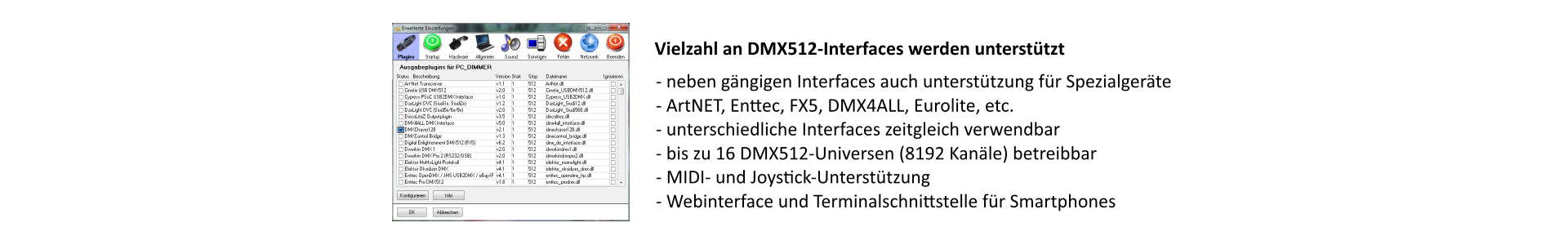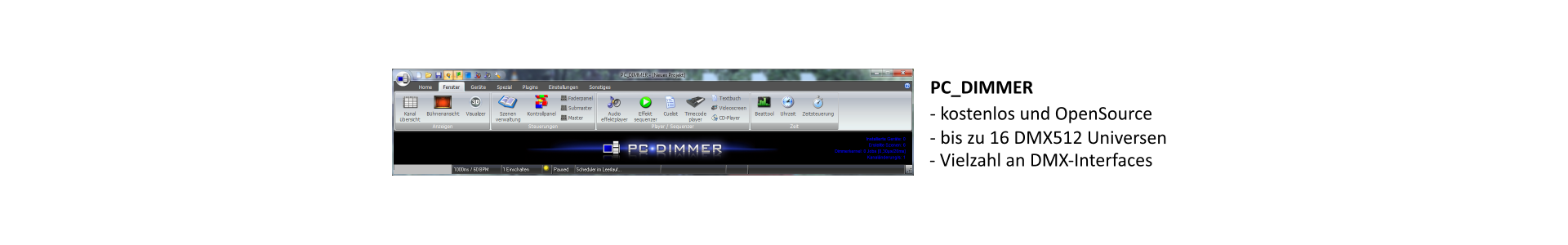 - PC_DIMMER-Software: Lichtsteuersoftware mit zahlreichen Steuermöglichkeiten für LED-PARs und MovingHeads