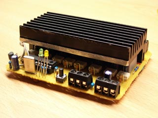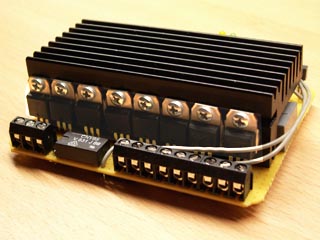 Der hier gezeigte Prototyp ist auf Lochraster aufgebaut. Alle Triacs werden auf einen gemeinsamen Kühlkörper montiert, sodass bei entsprechender Belüftung 8x500W kein Problem darstellen (bitte darauf achten, dass die Triac-Kühlfläche isoliert ist, wie z.B. beim empfohlenen BTA16-600B). Das Dimmerpack fällt extrem kompakt aus, sodass die gesamte Schaltung sogar in einem Standard-Hutschienengehäuse von Reichelt platz findet: