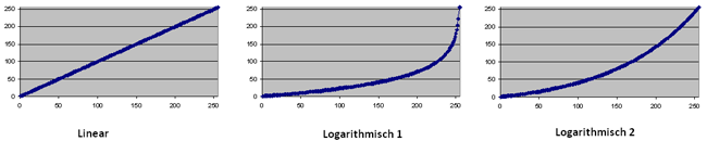 Es kann derzeit zwischen insgesamt drei Dimmerkurven gewählt werden: Linear und zwei logarithmische Varianten. Variante 2 der Logarithmuskurve dürfte für die meisten LEDs passen. Die lineare Kurve kann für das Steuern weiterer Hardware per PWM oder für eine mögliche D/A-Wandlung benötigt werden: