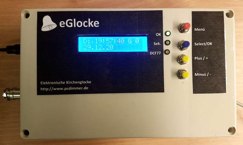 - 2×16 Zeichen LC-Display mit Menüstruktur zum bequemen Einrichten der Läutanlage