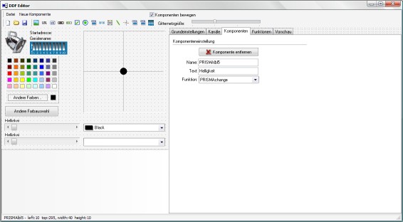 Der DDF Editor erstellt für PAN/TILT Kanäle automatisch ein Fadenkreuz, für RGB-Kanäle eine Farbauswahl, für COLOR- und GOBO-Kanäle entsprechend eine Auswahlbox mit Bildern und für alle anderen Kanäle einen einfachen Slider mit Beschreibung.