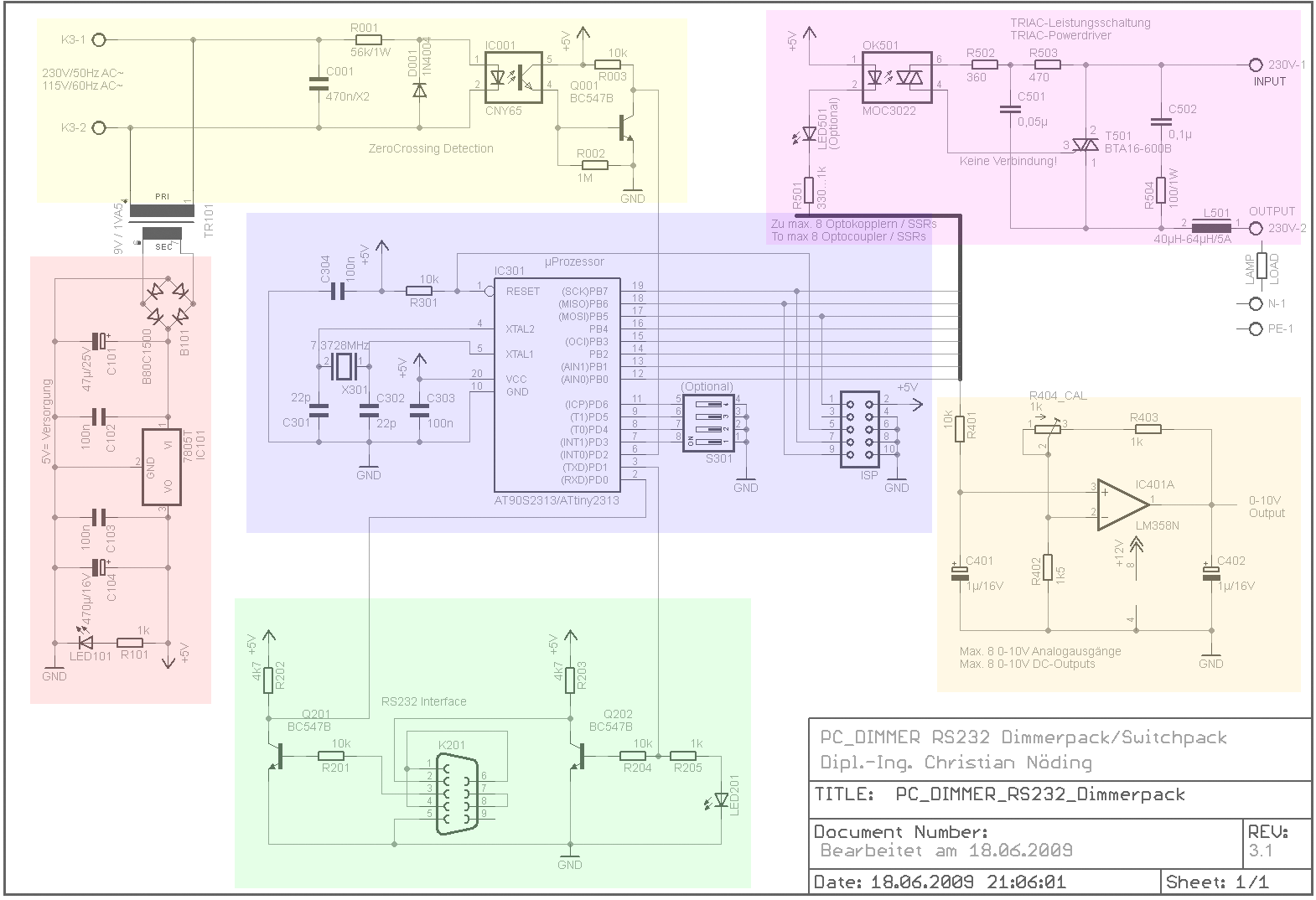Der Leistungsteil stammt in der Originalversion von Hendrik Hölscher (dessen Website leider nicht mehr online ist) bzw. den Application-Notes der TRIAC-Hersteller und wurde etwas abgewandelt hier genutzt.
